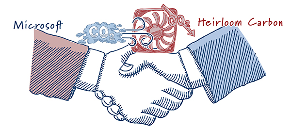 Microsoft agreed to buy credits from startup Heirloom Carbon for the removal of up to 315,000 metric tons of carbon dioxide over 10 years across two commercial projects.
